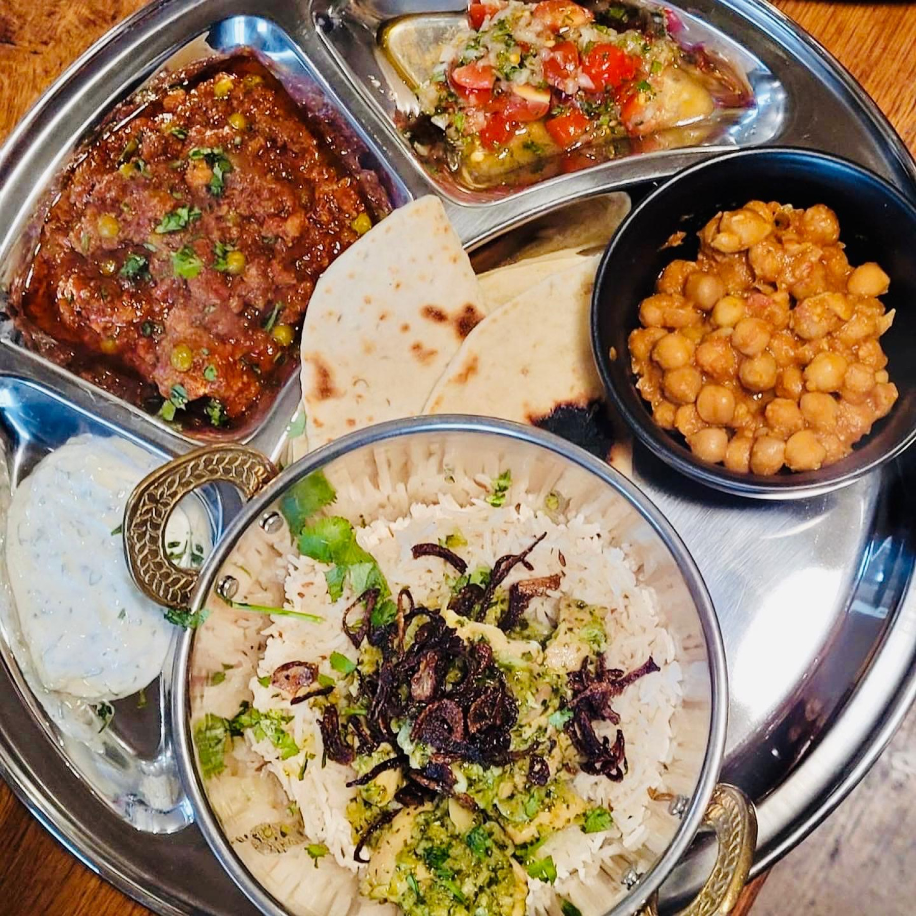 Home cooked chickpeas and beetroot in a rich spicy masala gravy. Spice level - mildly medium.